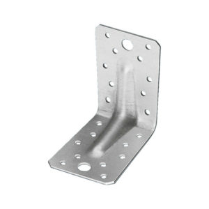 Equerre d’assemblage mixte avec renfort sur angle idéale pour les assemblages renforcés bois sur bois, béton et acier. Utilisable pour des connexions classiques bois sur bois
