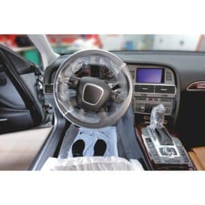 Art. N°: 2005041101Le kit de protection d’habitable de véhicule 5 pièces se compose d’une protection de siège, d’un tapis de sol, et d’un film de protection pour le volant, le levier de vitesses et le frein à main