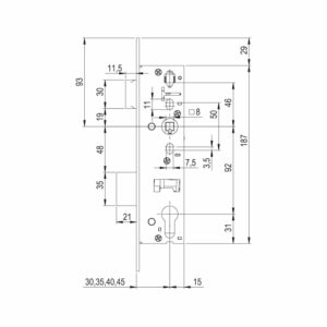 • Entraxe (serrure): 92 mm