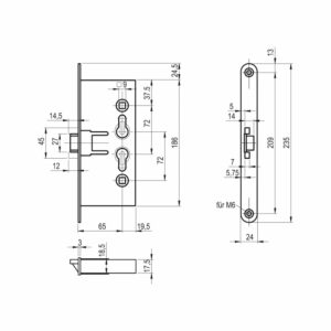 Art. N°: 1503121502Serrure encastrée pour portes coupe-feu de classe 3