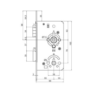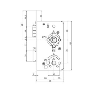 • Boîte de verrouillage de porte: 60 mm