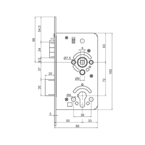 • Entraxe (serrure): 72 mm