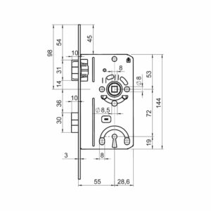 Serrure encastrée pour porte de couloir PZ classe 2