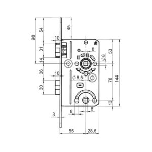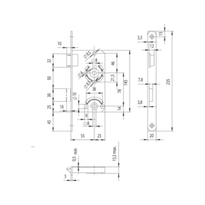 • Largeur du boîtier de serrure: 60 mm