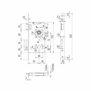 • Axe (serrure): 55 mm
