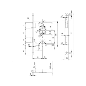 • Entraxe (serrure): 72 mm