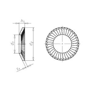 Rondelle de sécurité, denture sur une face