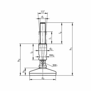 Glasfaserverstärktes Polyamid. Base foot can be swivelled and levelled to compensate for uneven ground