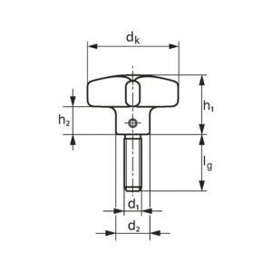 Poignée en croix en acier inoxydable A2 avec surface sablée et filetage femelle