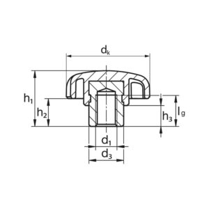 Molette forme étoilée avec filetage de trou borgne