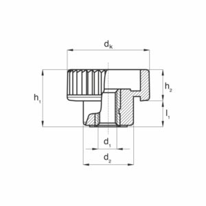Ecrou moleté en polyamide avec moletage antidérapant et insert fileté en laiton moulé