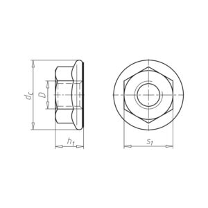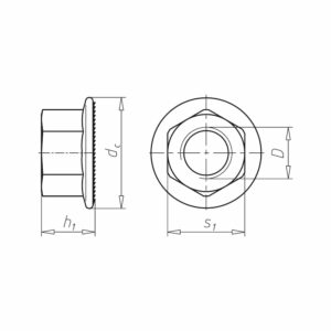 Ecrou de boulon de châssis en zinc nickel transparent (P3E) avec produit d’étanchéité. Depuis M12 avec pas fin.