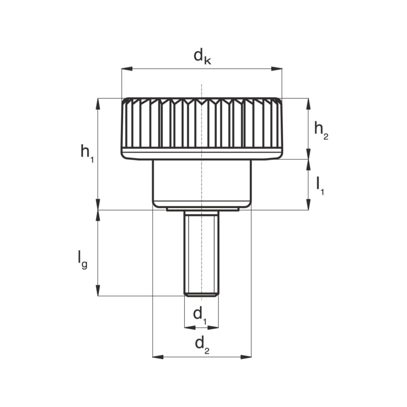 Art. N°: 3511070401Vis moletée en polyamide avec moletage antidérapant et goujon moulé pour charges élevées