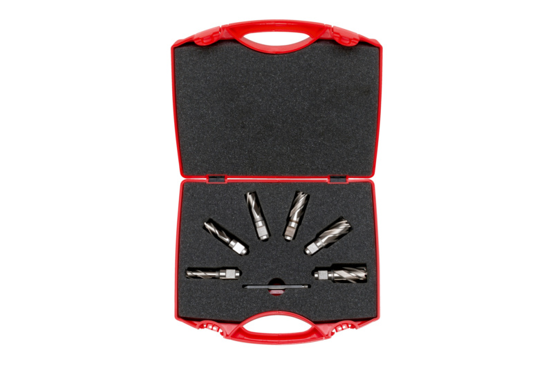 7 pièces. Avec queue à souder de ∅ 19 mm. Pour une utilisation sur des carotteuses magnétiques mobiles ou sur des perceuses fixes pour la production de grands trous jusqu’à ∅ 50 mm et une profondeur de coupe de 50 mm max. S’adapte à la plupart des perceuses magnétiques standard.