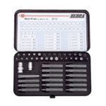Assortiment d’embouts complet avec versions longues et courtes des embouts standard les plus couramment utilisés. En plus du porte-embout, le kit contient également un cliquet à embout permettant d’utiliser des embouts sans machine