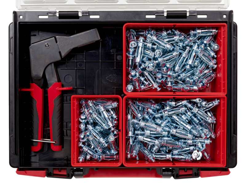 Coffret de chevilles métalliques parois creuses avec pince d’expansion.