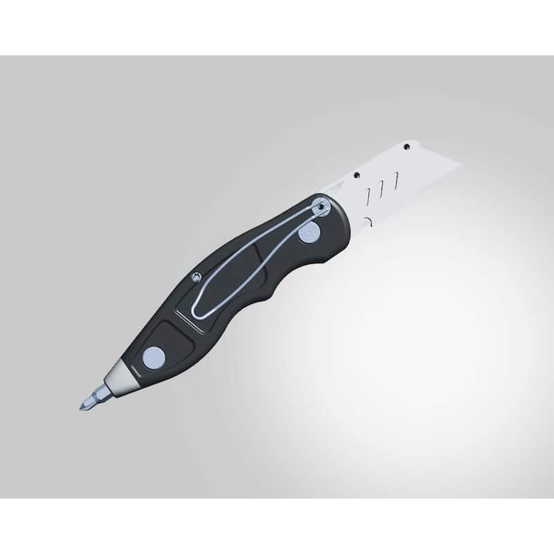 Conception solide trimatière avec poignée en métal/plastique et blocage de lame automatique