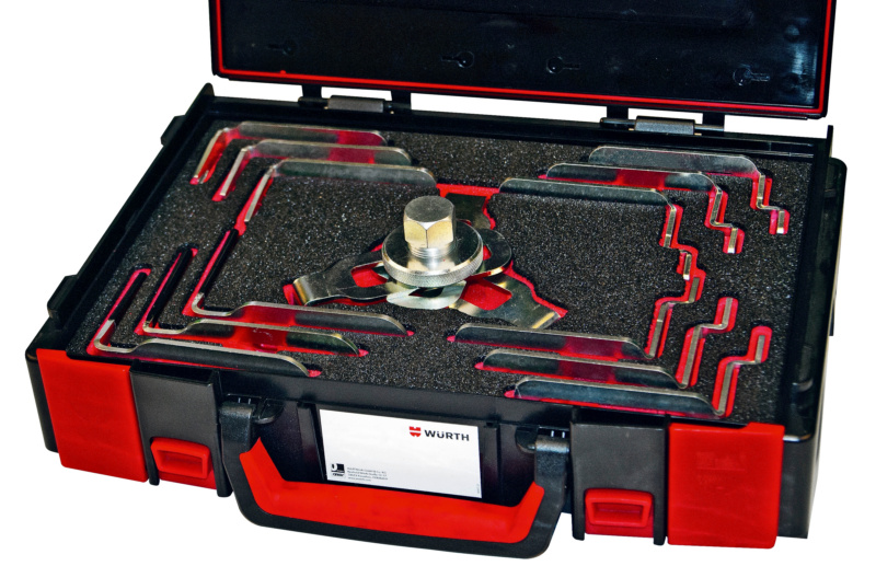 19 pièces. Assortiment complet pour le desserrage et le serrage des anneaux-bouchons filetés en plastique et en métal sur les sondes de carburant/pompes à carburant dans la zone du réservoir de carburant.