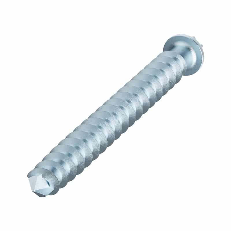 Vis spéciale à filetage total avec tête hexalobulaire pour armatures à capacité de charge élevée pour supports de salles, nécessitant également des dégagements faibles entre les bords et les vis, dans les zones intérieures sèches ou humides